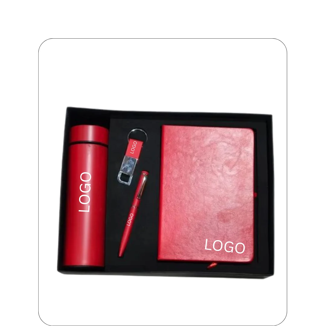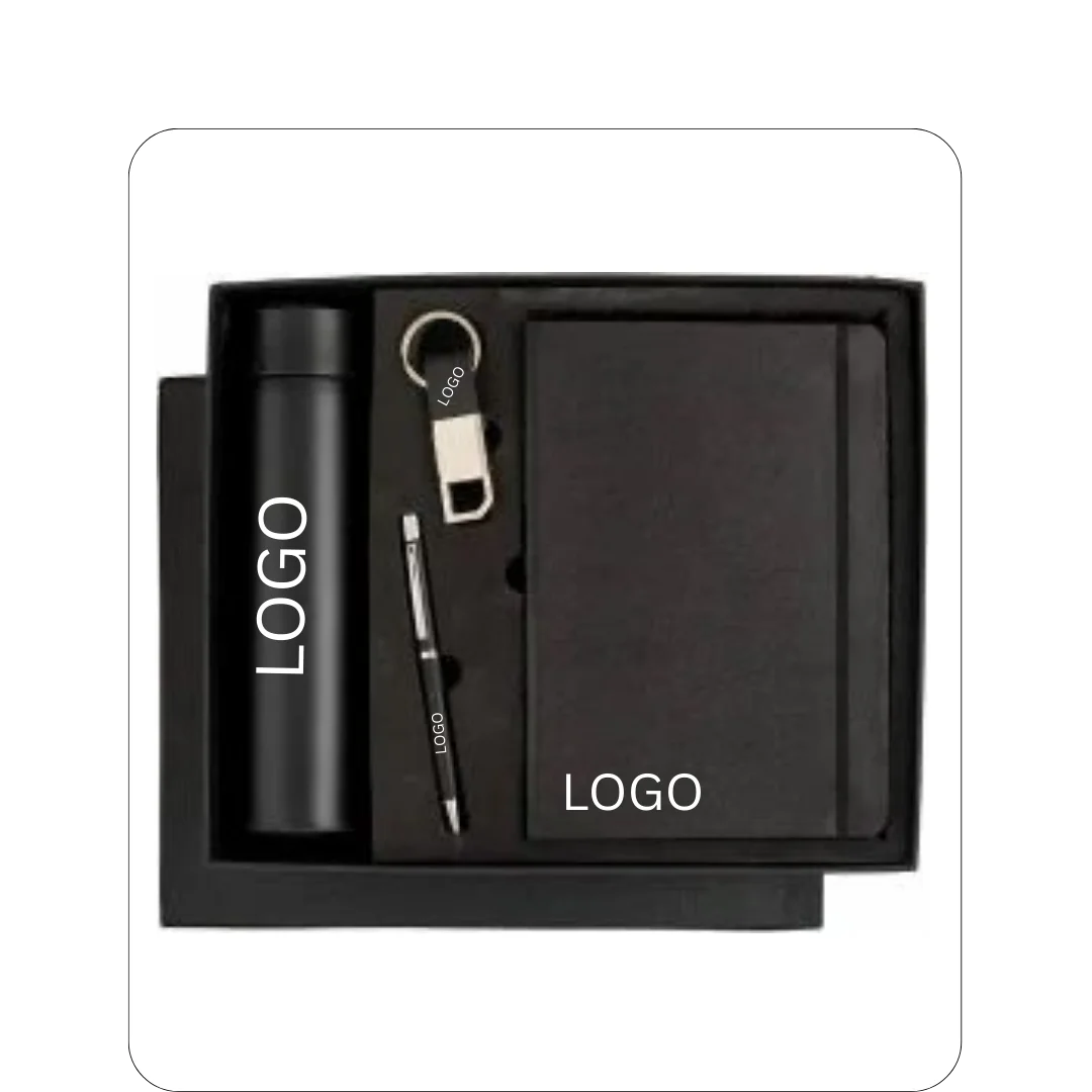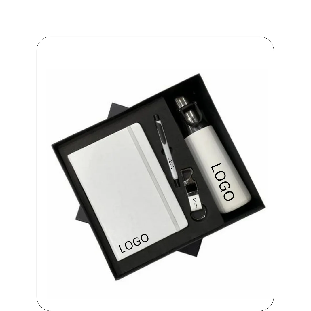 Upgrade your gifting game with this complete corporate set! Choose from cool blue, clean white, bold red, or classic black. This set has everything they’ll love—a smart flask, a sleek diary, a smooth pen, and a handy keychain. Perfect for clients, employees, or friends.